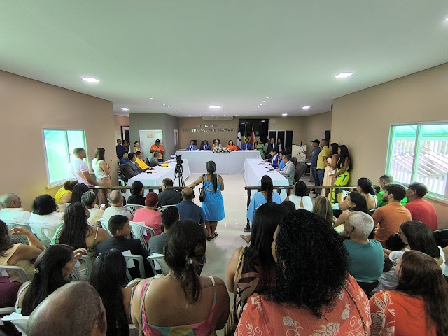 Em seguida, todos se direcionaram para a Câmara de Vereadores onde ocorreu a cerimônia de posse, a então presidente, vereadora Roseli, iniciou com a execução do hino nacional. Gel da Farmácia estava acompanhado da primeira dama - Ângela Coelho.